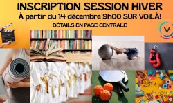 La session hivernale approche à grands pas. Certains cours débuteront dès le 5 janvier. Les inscriptions seront possibles à partir du dimanche 14 décembre à 9:00. Fiche officielle des activités H2026 Descriptions des activités H2026 Si jamais vous êtes un nouvel utilisateur de la plateforme d’inscription ou que vous avez…