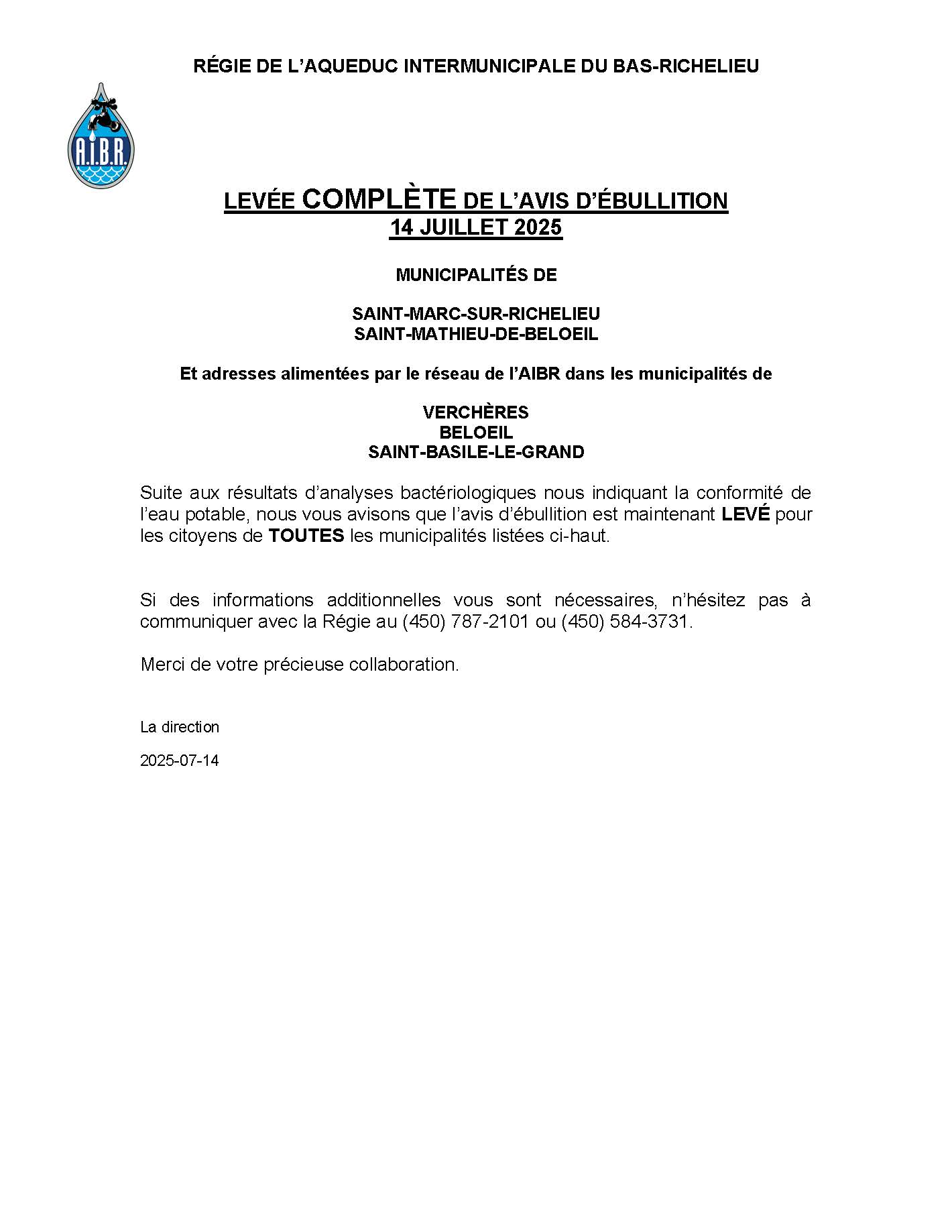 Levée de l’avis d’ébullition – 14 juillet 2025 (002)
